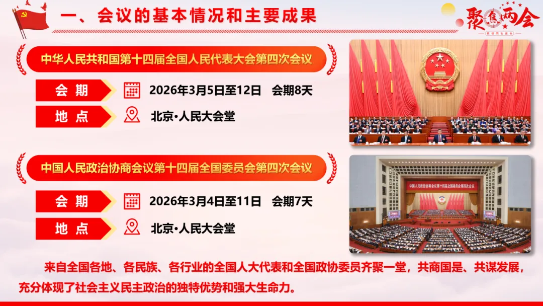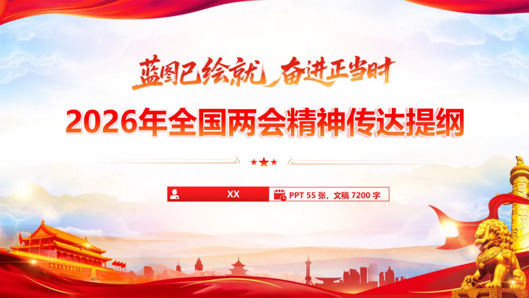 2026年全国两会精神传达提纲PPT 2026年两会PPT 通用精品 共55页讲稿7200字
