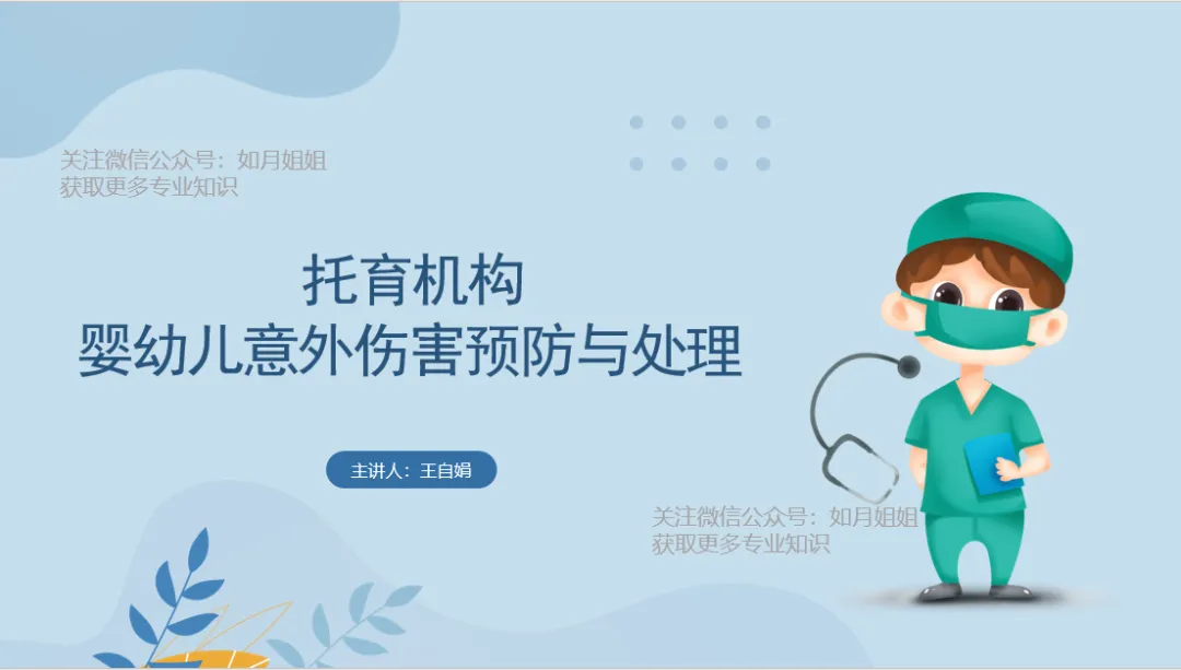 本人在基层妇幼保健机构工作30余年,从事过儿科临床、儿童保健、群体保健、公共卫生等工作。当前很多幼儿园非常需要托育方面的专业卫生保健知识,为此,我将陆续把自己多年工作经验和精心制作的PPT课件分享给大家,欢迎您关注、转发、留言交流。