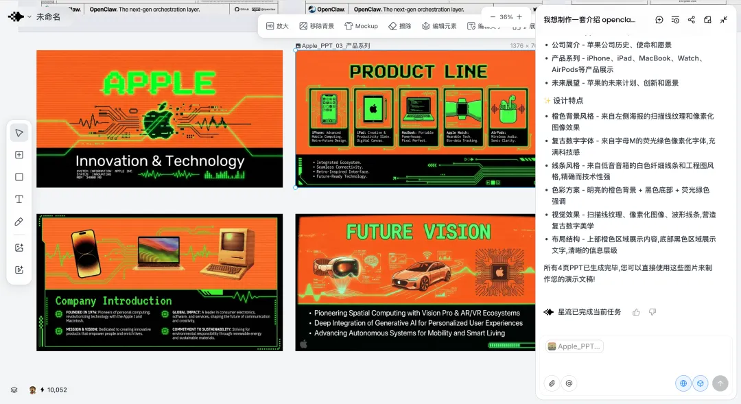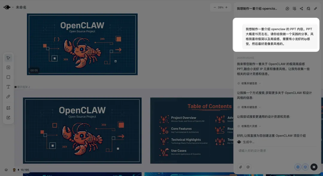 一开始其实挺简单的动机,就是想快一点把介绍OpenClaw 的 PPT 搞出来,少熬点夜,然后就先用星流试试看能不能行。