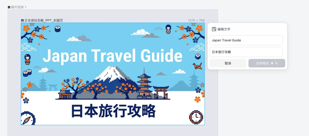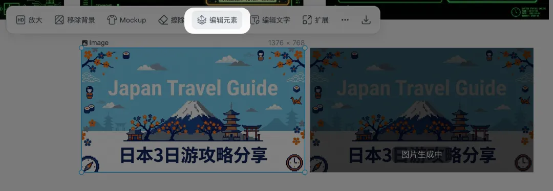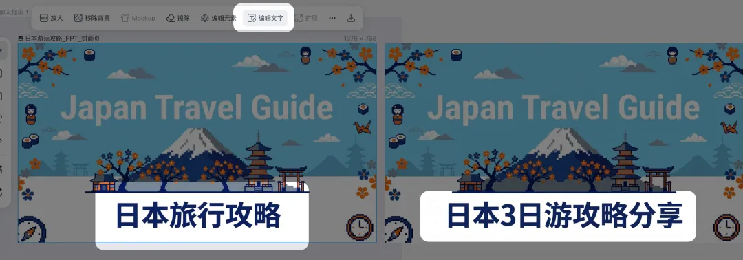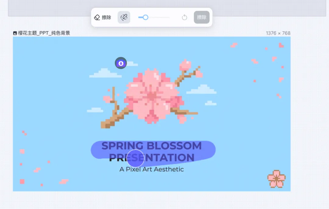 你可以把它当纯背景用,然后自己再叠一层文字上去,如果生成的图片里面想要拿来做背景但是有文本的话,咱们可以直接使用擦除工具去删除文本。