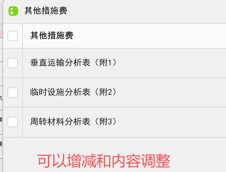 措施费和其他费用,可以载入表格内,修改完善,分部汇总表和汇总表会自动链接税金和总价。软件内置Excel模板,不满足实际需求可以修改调整,打造适合实际需求的表格格式。