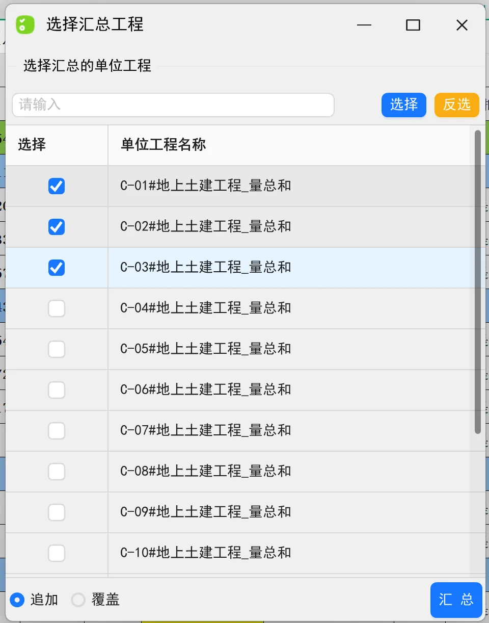 首先分部分项汇总(默认整体汇总),汇总表包含劳务分包、材料、专业分包和其他措施费,直观显示各科目的不含税成本、单方造价、成本占比、税率、进项税、含税单方等造价数据,是我们成本测算的基础数据表和成本管理台账表(不同早就阶段,修改不同阶段的价格和数量,对比分析,动态成本控制)。多业态、多单体同时测算的,可以灵活的根据实际需求选择单位工程汇总。