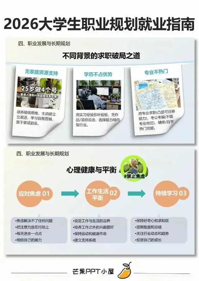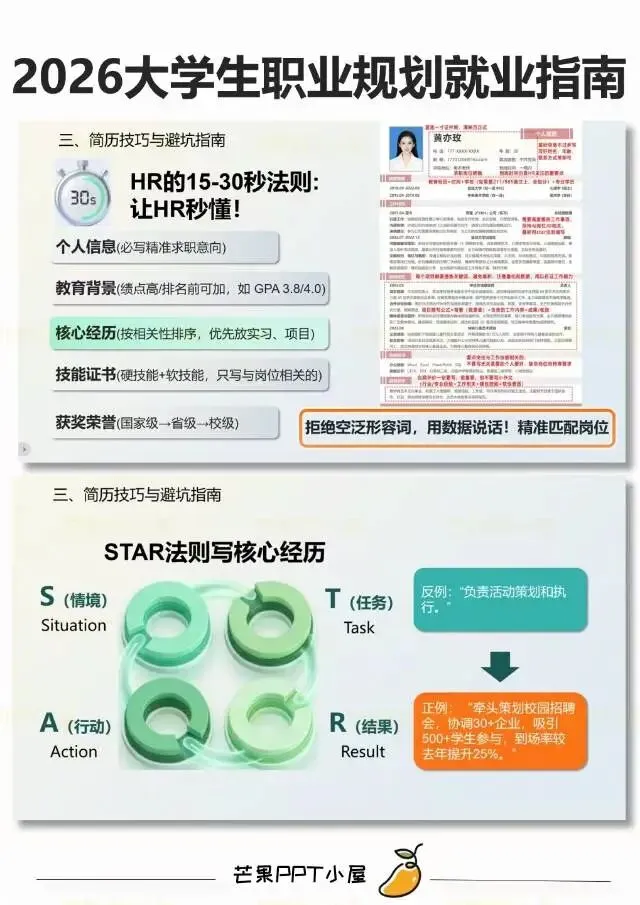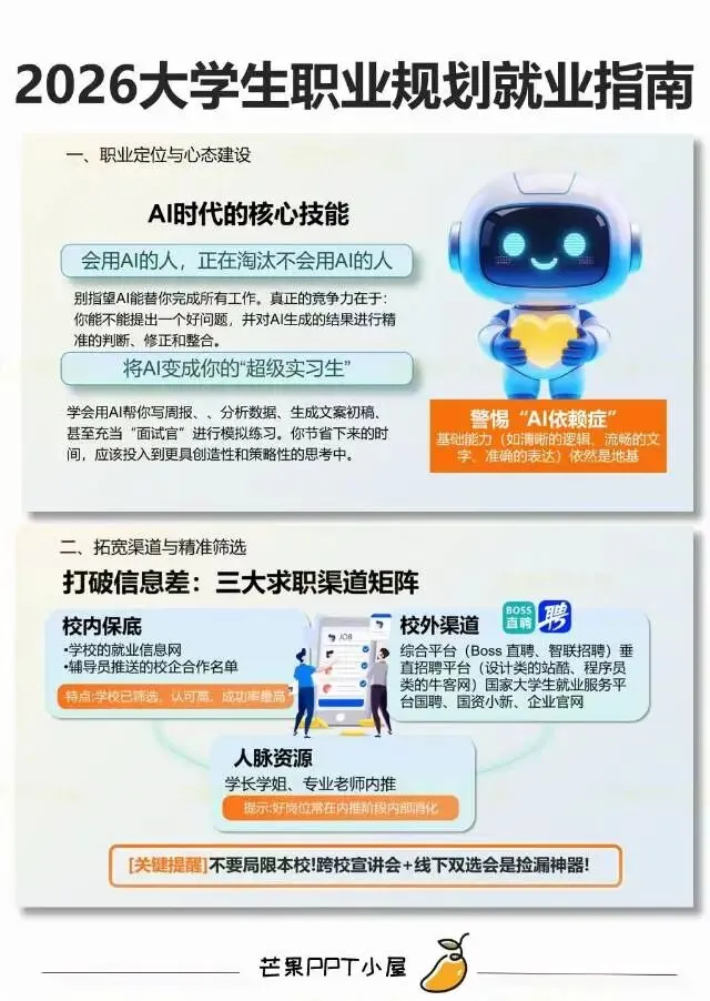 这份PPT构建了“认知重塑→信息拓宽→实战攻坚→职业发展”四步框架。