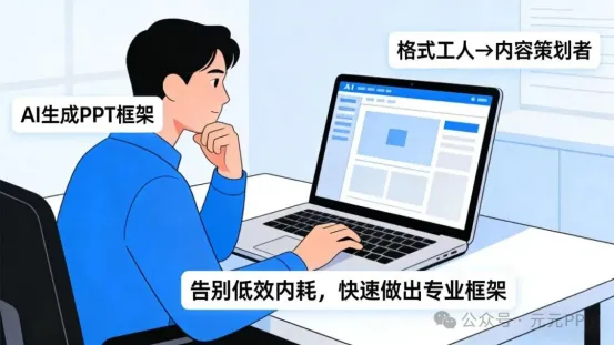 为什么AI 能快速生成老板满意的 PPT 框架?核心在于 AI 能精准把握职场汇报的底层逻辑,同时实现效率的极致提升,这也是其相比传统制作方式的核心优势。