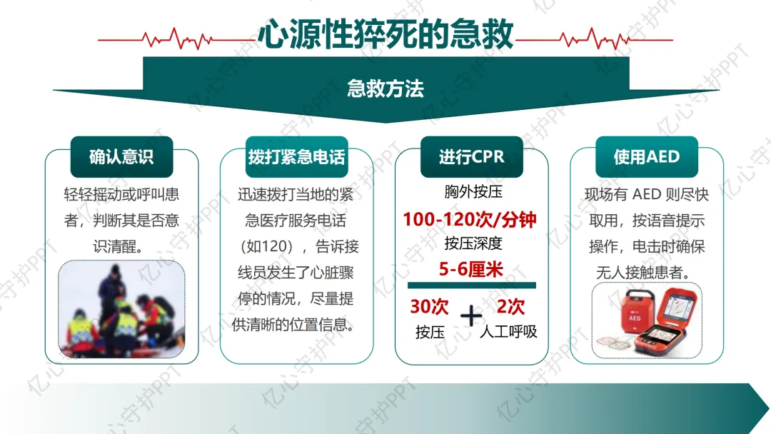 使用AED:如果附近有自动体外除颤器,应尽快获取并按照语音提示操作。AED是普通人也能操作的“救命神器”。