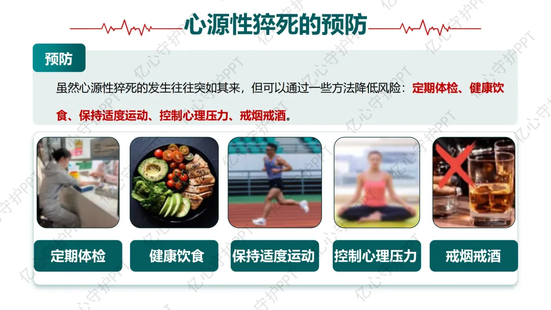 相比于应对突发状况,日常的预防更为重要。虽然心源性猝死有一定的不可预知性,但通过科学的生活方式,我们可以有效降低风险: