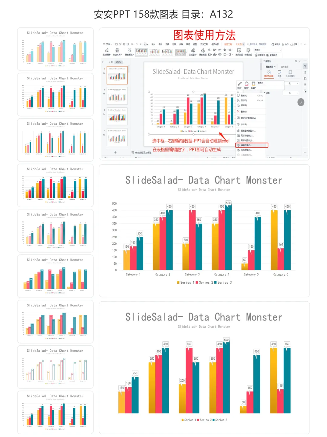 >158款图表 改数据自动生成动态可视化ppt数据图表模板柱形图饼状折线统计分析素材
