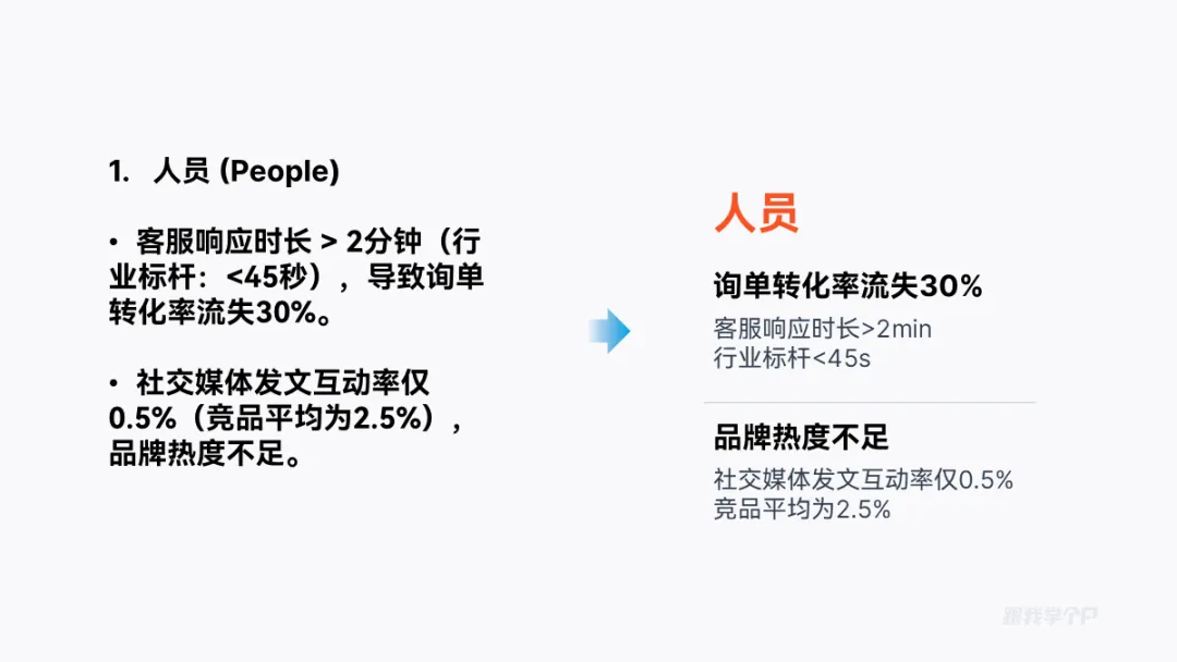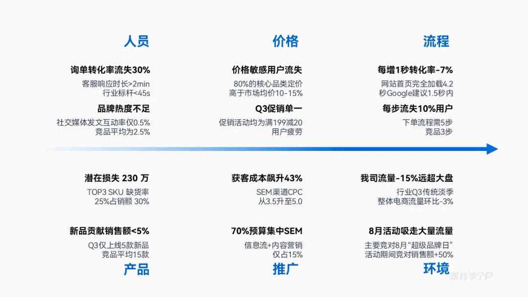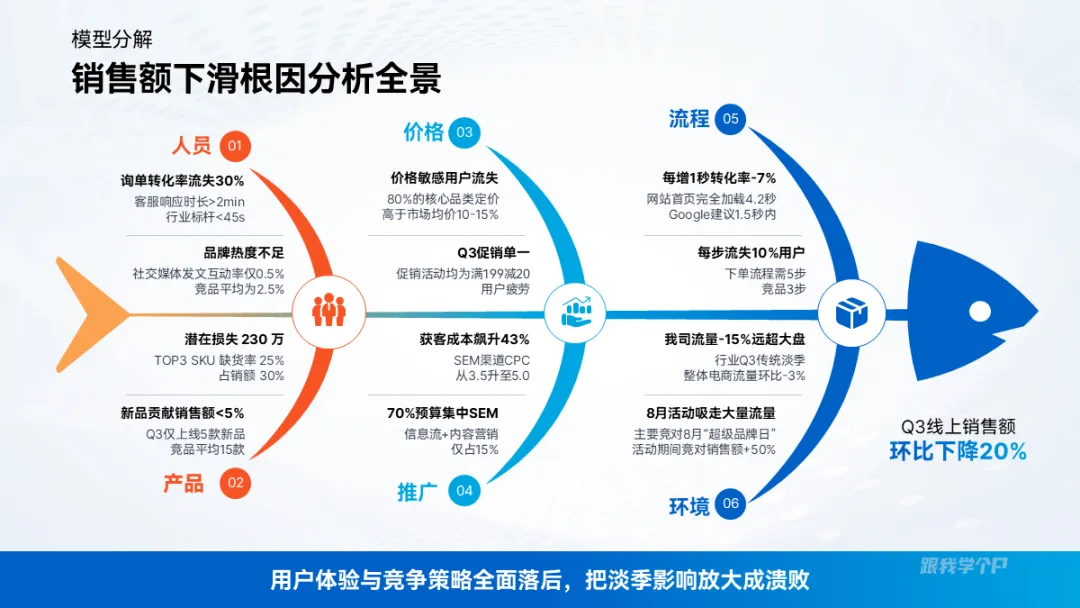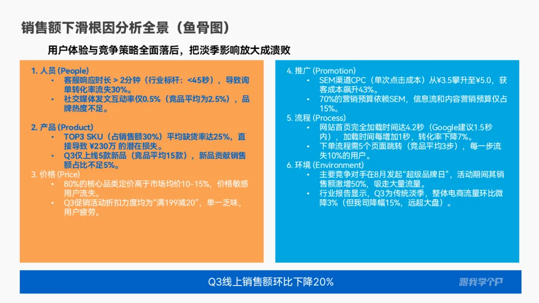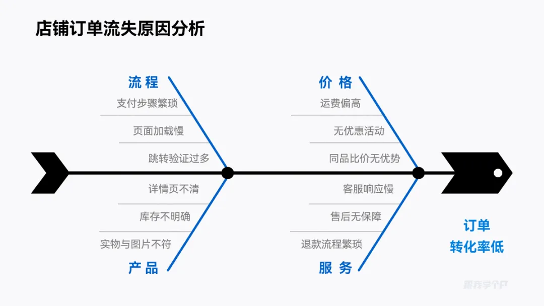 先来看一个简单的,这页是店铺订单流失原因分析的案例: