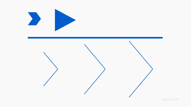 然后来制作鱼骨图,最简单的方法就是用三角形和线条组合拼接,一个简易的鱼骨图就出来了: