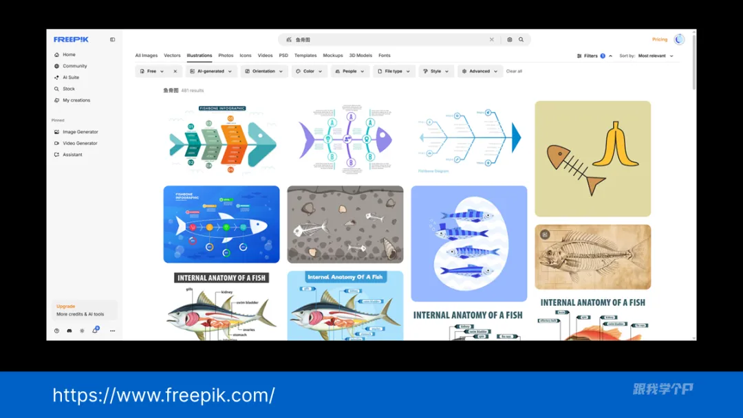 接下来是鱼骨主体,为了提升档次(主要是偷懒),我直接用现成的素材,这是在freepik找的,有免费的素材可下载: