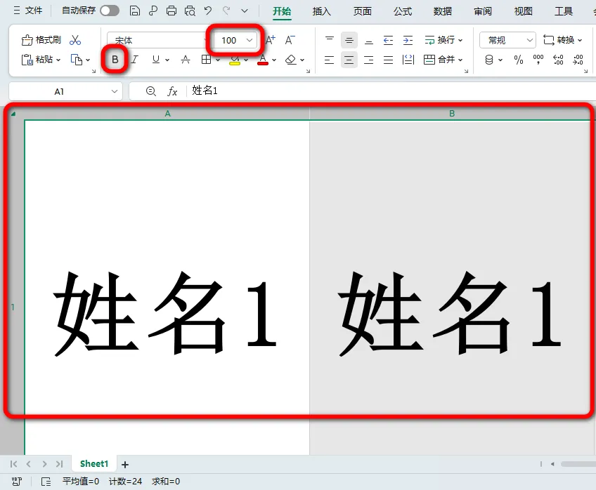 保持内容全选状态,将字号设置为「100」,点击「B」对字体进行加粗处理。