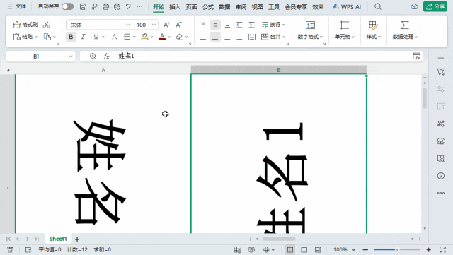 选中B列单元格区域,重复上述操作,将「文本方向」设为「90度」,点击「确定」保存设置。