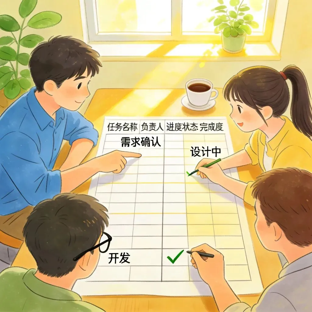 项目管理的场景,体现横向筛选在项目进度跟踪中的应用