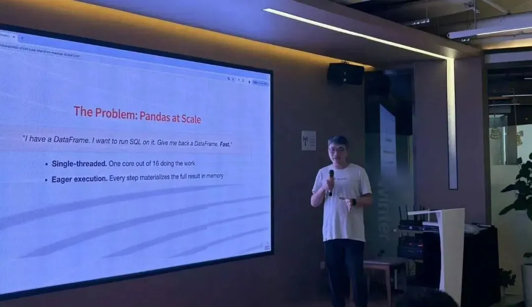 王鹏程在演讲中分享了chDB 4.0的核心特性,重点介绍了其新增的Data Store组件。该组件允许数据科学家使用熟悉的Pandas API进行编程,底层则自动将操作转换为ClickHouse查询执行。他阐释了如何通过惰性执行、智能查询规划与低开销数据交换等机制,在保留Pandas易用性的同时,充分发挥ClickHouse的高性能优势,从而为整个数据科学工作流带来显著的效率提升。