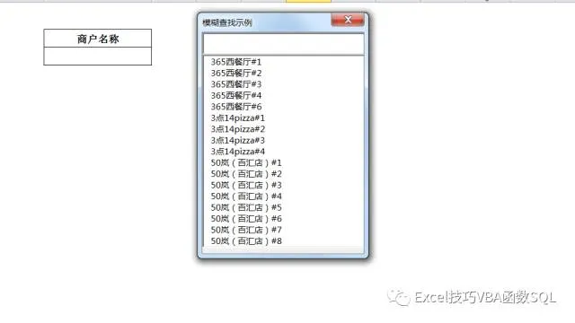 2、点击某一个商户名称的时候,实现所点击内容输入到指定单元格;