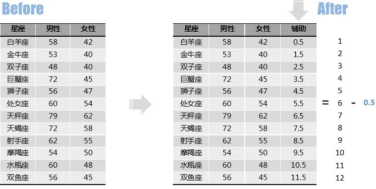 首先需要进行数据准备,在原有数据的基础上增加一列辅助数据。