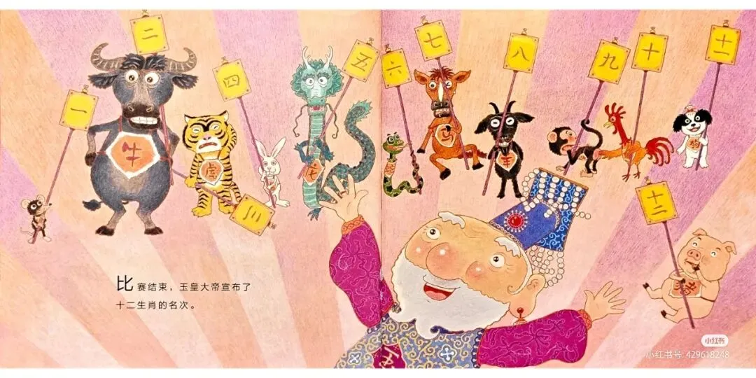 《十二生肖的故事》绘本以民间传说为蓝本,通过“渡河比赛”的趣味主线,生动讲述十二生肖的由来。故事中,机灵的老鼠、憨厚的老牛、勇敢的老虎等动物各展性格,在比赛中经历波折,最终按到达顺序成为十二生肖。绘本画面精美,语言童趣,既解答孩子对生肖顺序的疑问,又传递团结、诚信等价值观,是传承中华传统文化的经典之作,适合3-8岁儿童阅读。