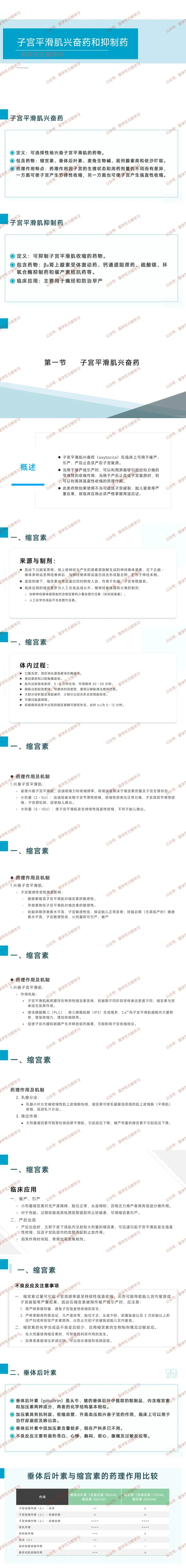β₂肾上腺素受体激动药:激动子宫平滑肌细胞膜上 β₂受体,增加细胞内 cAMP 水平,降低细胞内钙水平,使子宫平滑肌松弛,抑制收缩。药物有利托君等,用于治疗先兆早产。不良反应有心率加快等心血管反应及过敏反应,禁忌证多,需在有抢救条件医院、医生密切观察下使用。