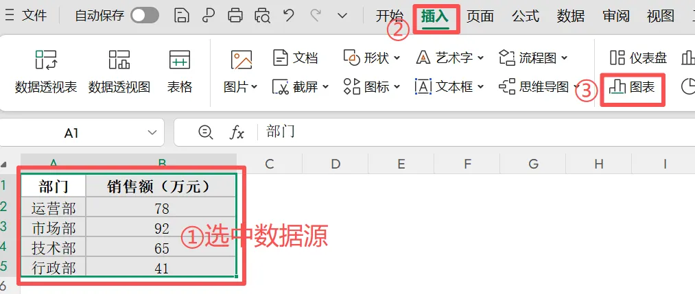 多个部门对比同一个指标“销售额”,用簇状条形图可以一眼看出哪个部门销售额最多,哪个最少。