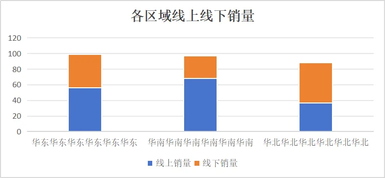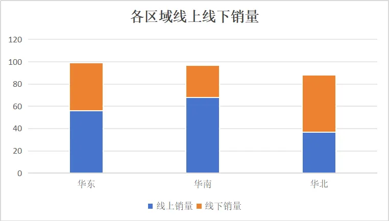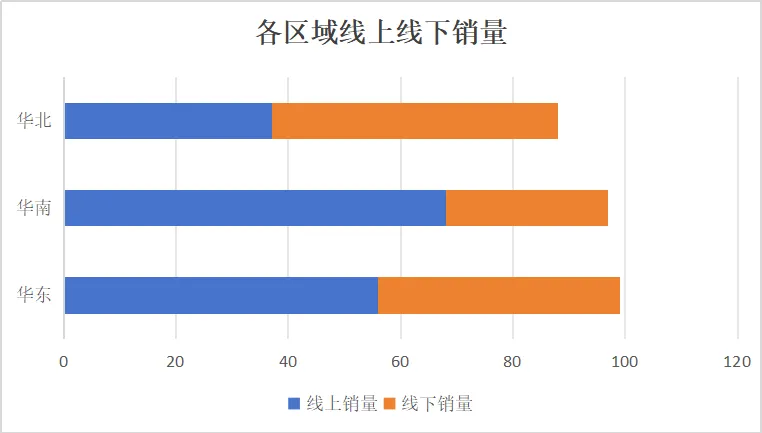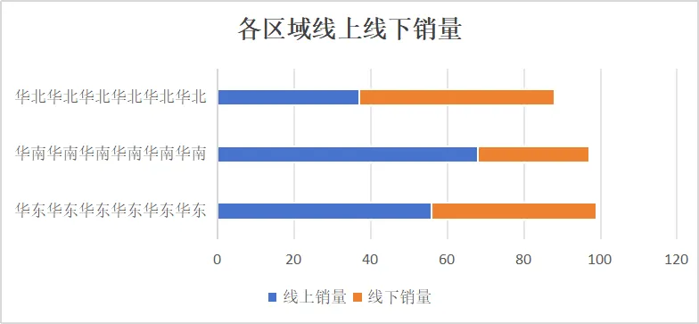 3. 百分比堆积条形图:不看各类别的总量,只关注各子类别在自己总类别中的占比情况。如下示例: