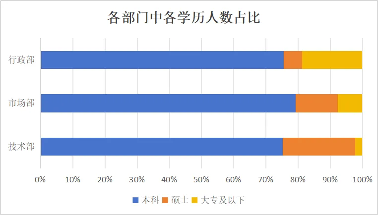 可以清晰看出,技术部硕士学历占比相对其它部门要高。