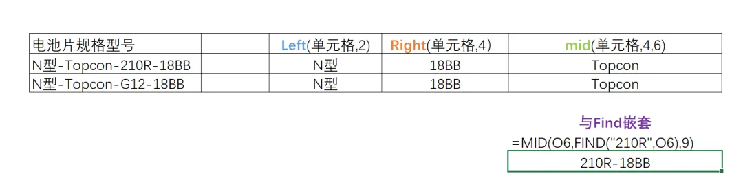 - 从中间某个位置开始截 → MID(常配合FIND定位)