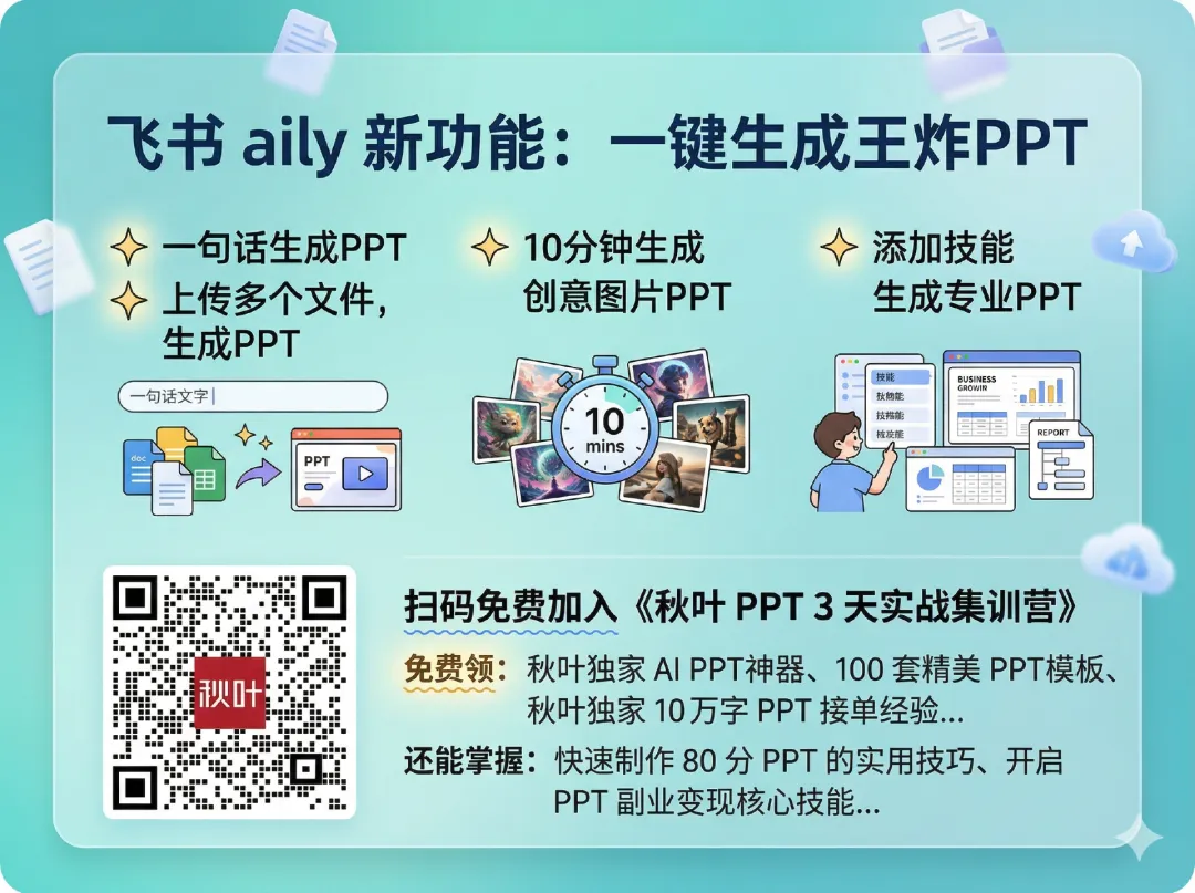 最后总结一下飞书生成 PPT 的 3 个用法: