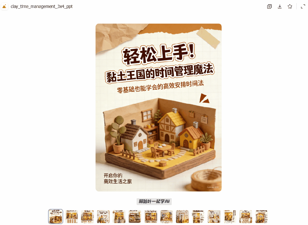 不过这个 PPT 不能在线编辑,要是不满意,可以通过对话让 AI 换图、调整排版。
