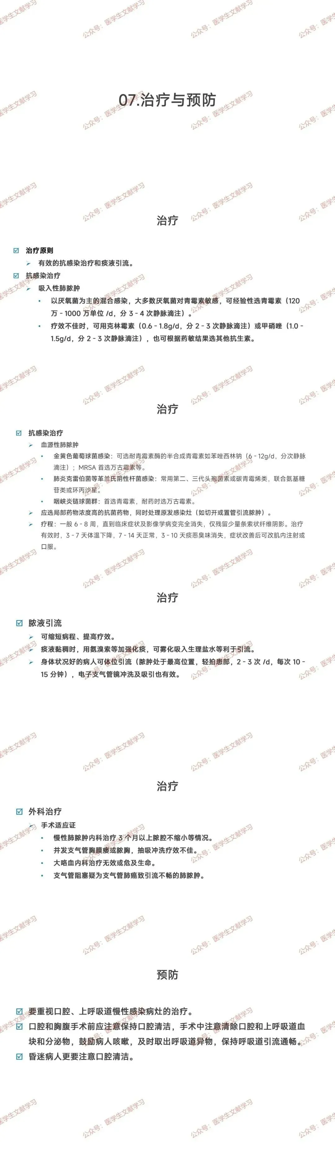 病因:吸入口鼻、咽部病原菌,厌氧菌为主,也包括需氧菌和兼性厌氧菌。误吸和气道防御清除功能降低是重要原因。