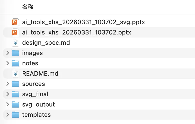✅ PPT 生成完成!📁 文件位置:- xxx.pptx — 原生 DrawingML 版本(可编辑)- xxx_svg.pptx — SVG 参考版本(兼容性好)📋 同时生成了演讲者笔记,位于 notes/total.md