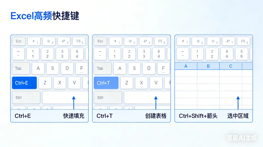 真正的 Excel 高手,从来不会用鼠标反复点菜单、拖拉选数据,把最基础的快捷键用透,就能搞定 80% 的重复操作。比如: