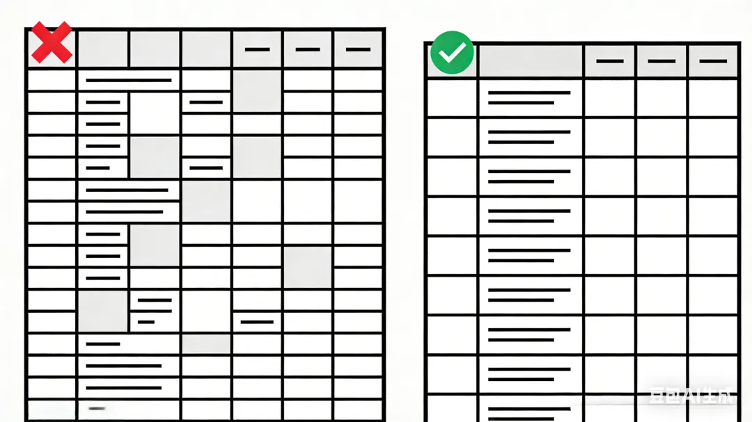 一行只存一条数据,一列只存一个属性,不合并单元格,不随意打乱表格结构;