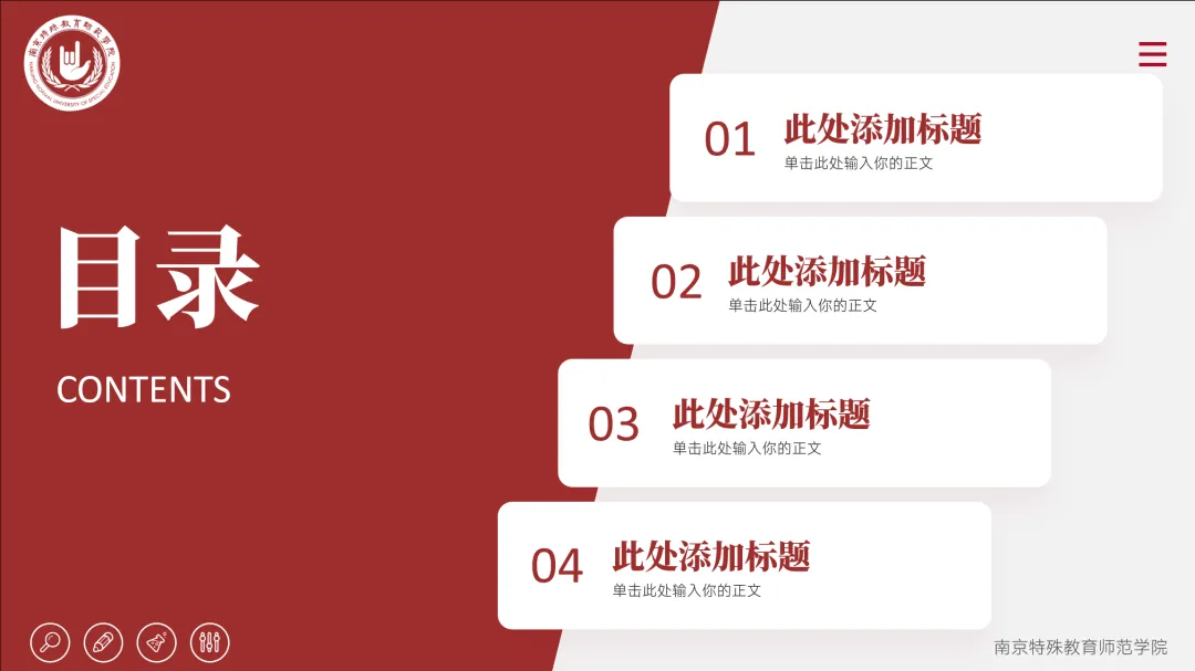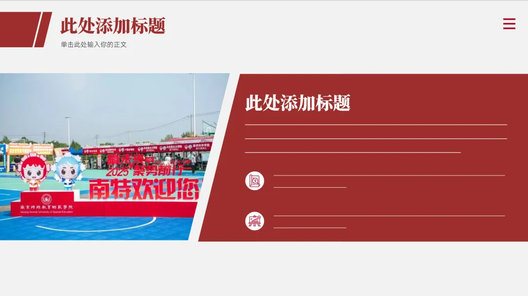 参赛者运用PPT对特殊教育、融合教育、孤独症儿童教育、康复科学、无障碍管理、艺术疗愈、人工智能等方向进行科普;或结合科创项目、实验室研究进行校内外科研成果展示。PPT应结构清晰、内容详实、逻辑完整,建议使用信息图表、动态数据可视化,可加入简易动画演示。