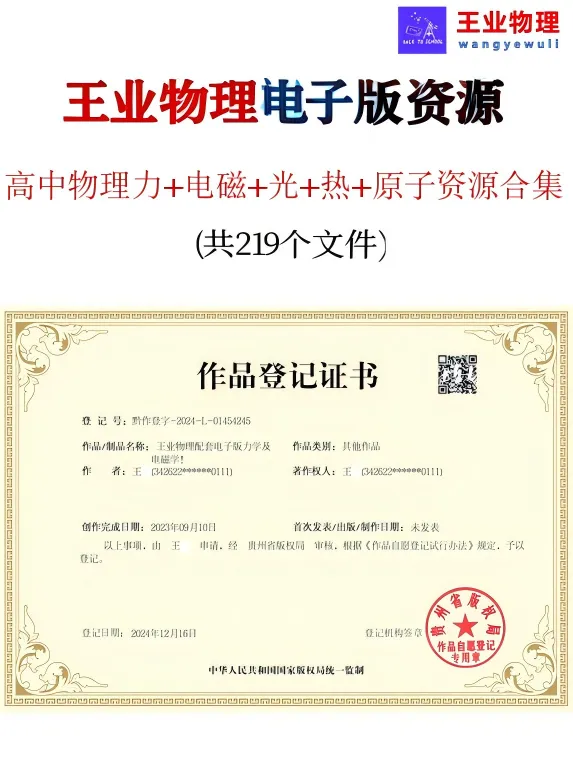 >【独家授权】王业物理ppt课件+word讲义资源合集219个文件(高中所有内容)