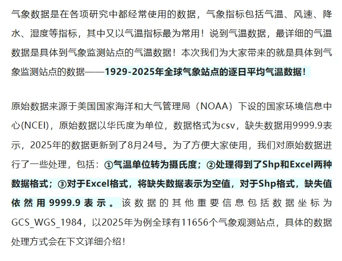 7.1929-2025年全球气象站点逐日气象指标数据(气温、降水量、风速等12项)
