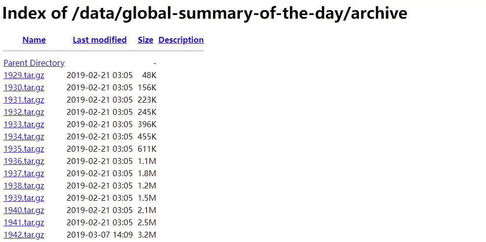 我们先来看一下Excel格式的数据,每个Excel文件中包含有该年365天每天的全球所有气象站点的平均气温值。