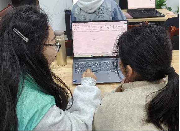 随后,志愿者“一对一”指导孩子们进行电脑实操。孩子们在志愿者的帮助下,尝试建立自己的第一个表格,输入姓名、年龄等信息,并学习使用求和、平均值等简单函数。通过亲身操作,孩子们在实践中加深了对Excel的理解,感受到数字化工具带来的便捷与乐趣。