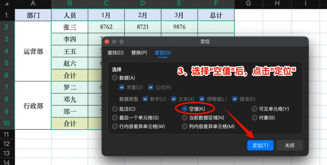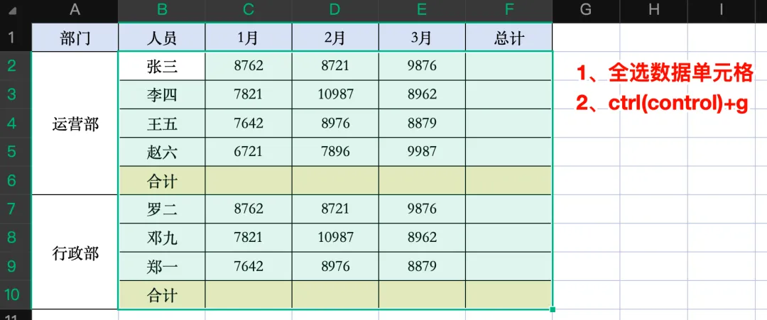 全选需处理的数据单元格