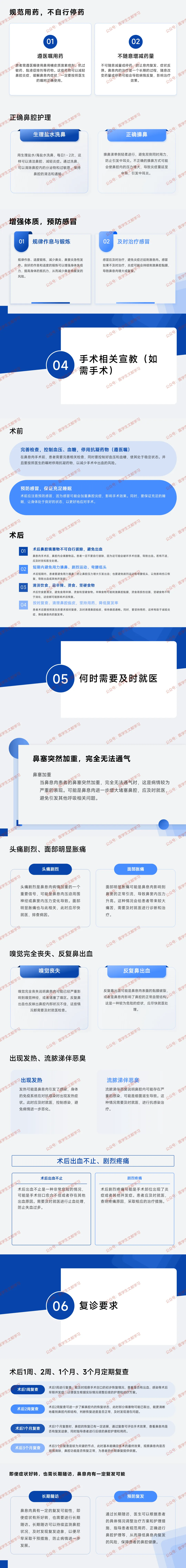 - 规范用药管理严格遵医嘱使用鼻用激素、抗过敏药、黏液促排剂,不自行减量、停药,防止息肉复发与症状反弹。