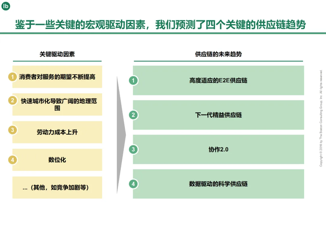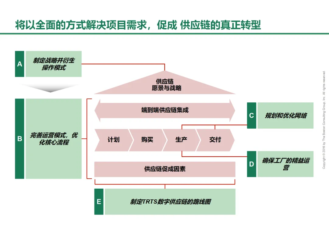 在智能制造定义未来竞争力的时代,供应链已成为企业核心的战略资产。波士顿咨询公司(BCG)的实践方法论清晰地勾勒出一条可落地的路径:始于深刻的内部诊断,明现状、识差距、定优先级;成于聚焦核心挑战的战略规划,特别是构建TRTS供应的坚实韧性;兴于S&OP的智能进化,使之成为跨部门高效协同、驱动精准决策的神经中枢;最终达于真正透明、敏捷、高效的端到端供应链集成。这是一条环环相扣、层层递进的升级之路。诊断是精准施策的前提,TRTS韧性是稳定运营的基石,S&OP协同是打破壁垒的引擎,端到端集成是价值释放的终点。企业唯有以严谨的诊断为起点,将BCG的战略指引与自身实践紧密结合,持续投入于组织、流程、技术和数据的协同进化,方能构建起兼具智能决策、动态韧性与全局优化能力的未来供应链,在复杂多变的环境中赢得持久竞争优势。