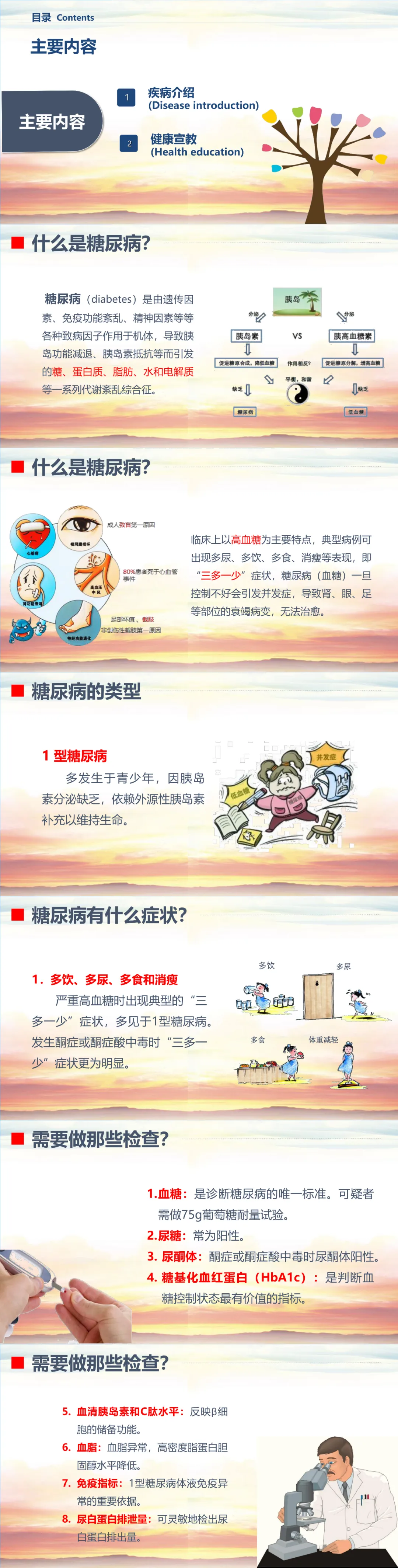 糖尿病是由遗传因素、免疫功能紊乱、精神因素等各种致病因子作用于机体,导致胰岛功能减退、胰岛素抵抗等而引发的糖、蛋白质、脂肪、水和电解质等一系列代谢紊乱综合征。临床上以高血糖为主要特点,典型病例可出现多尿、多饮、多食、消瘦等表现,即 “三多一少” 症状,糖尿病一旦控制不好会引发并发症,导致肾、眼、足等部位的衰竭病变,无法治愈。