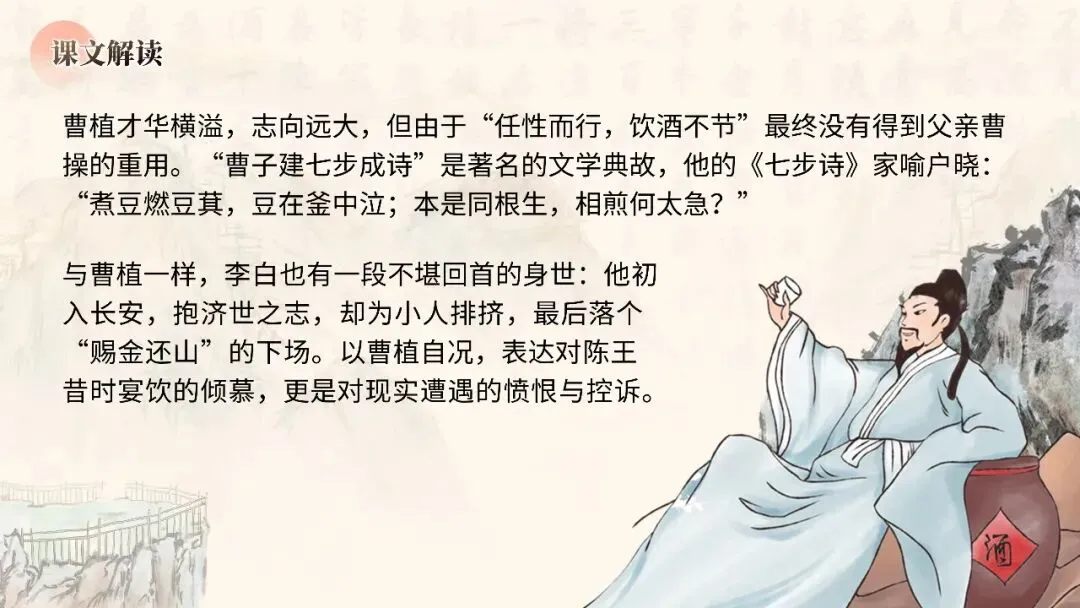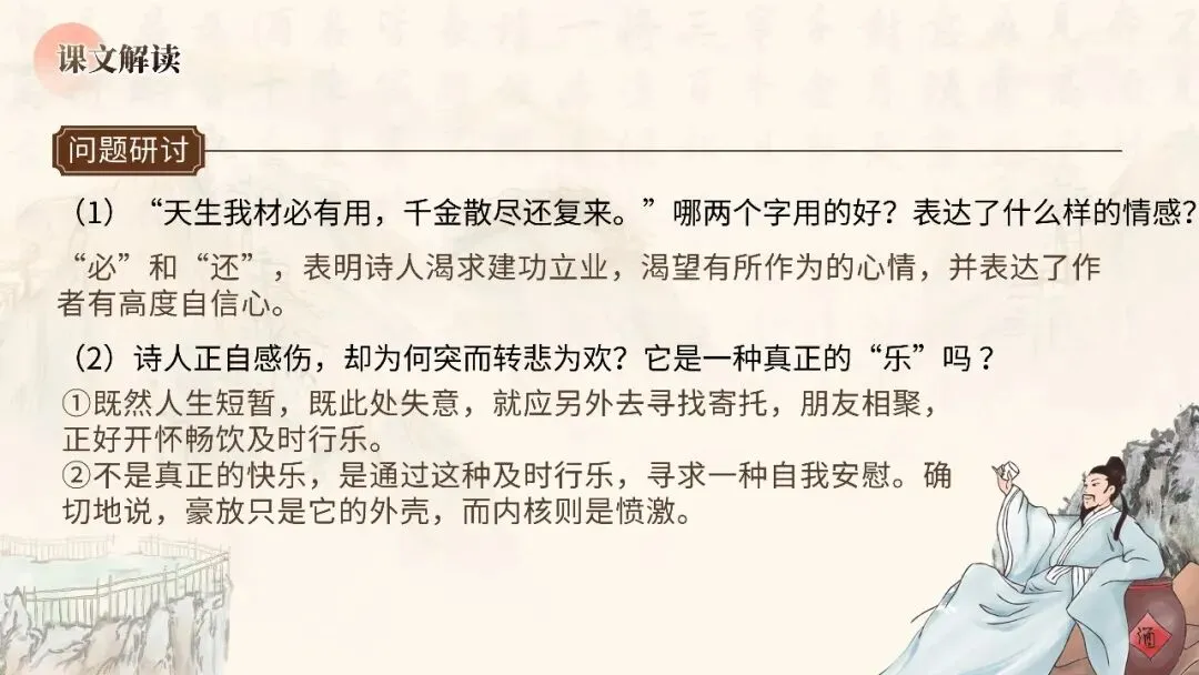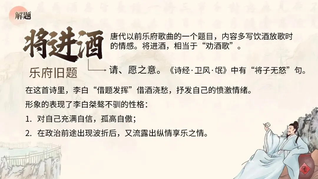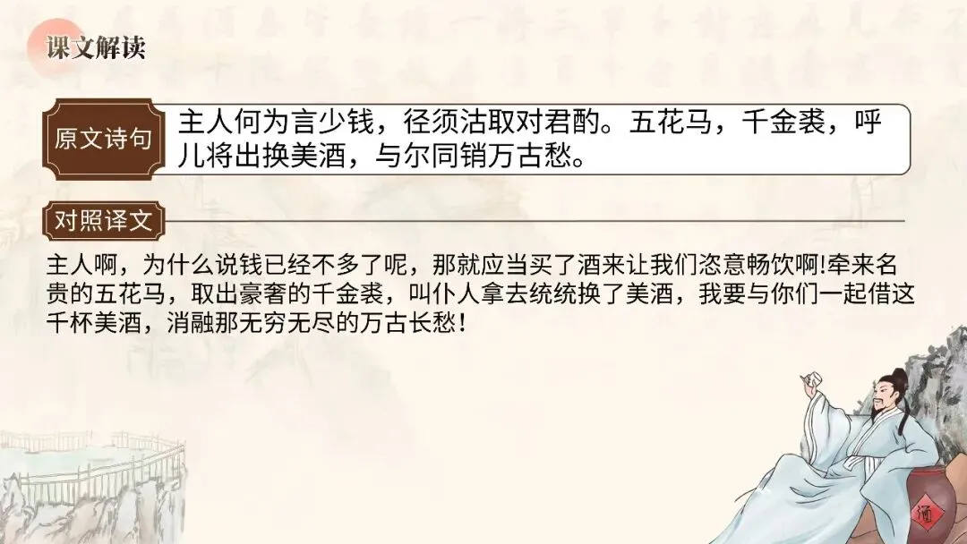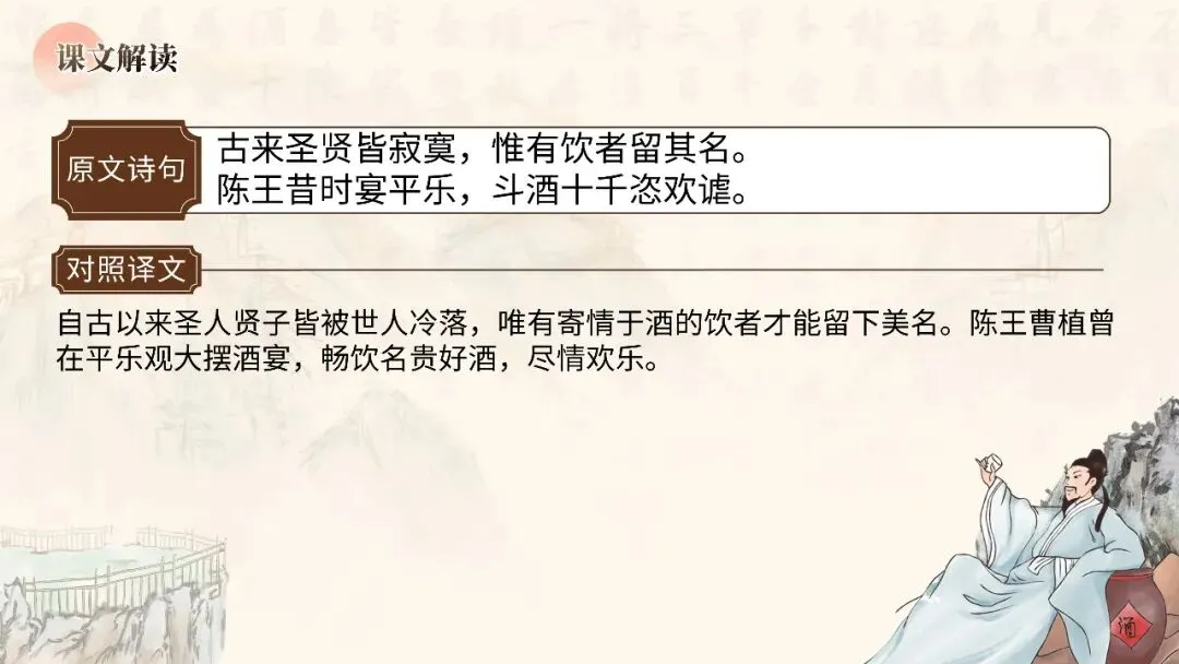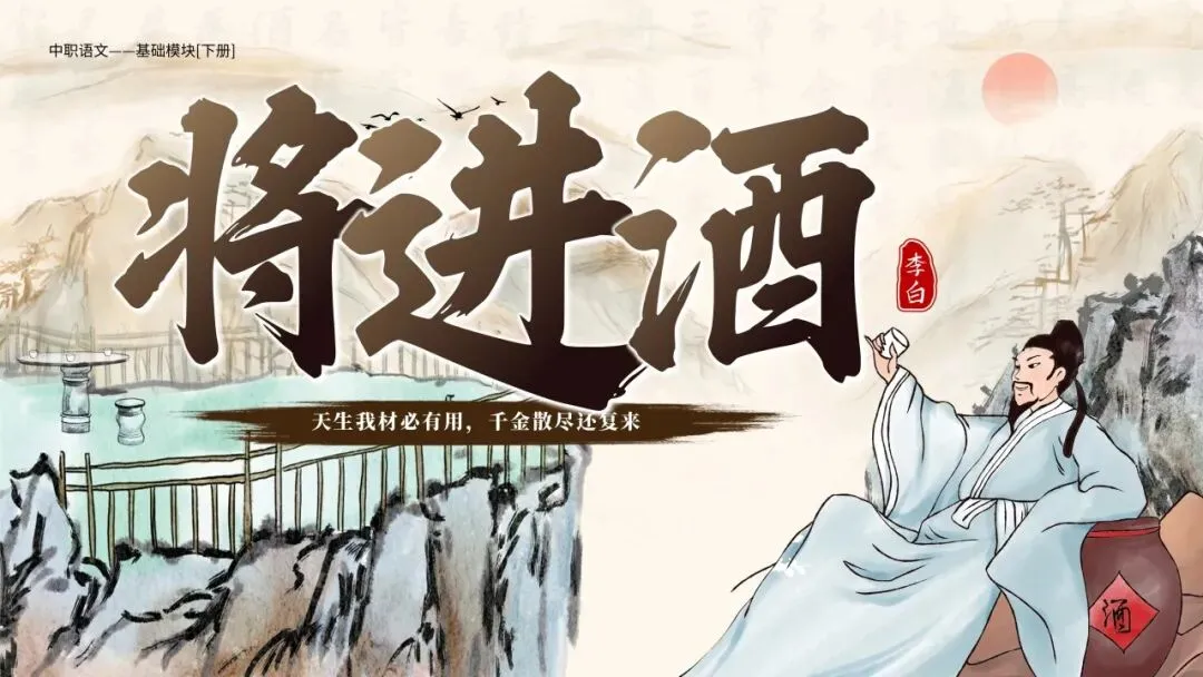 本期更新的课件为统编高教社版中职语文基础模块下册第七单元《将进酒》,共22页。