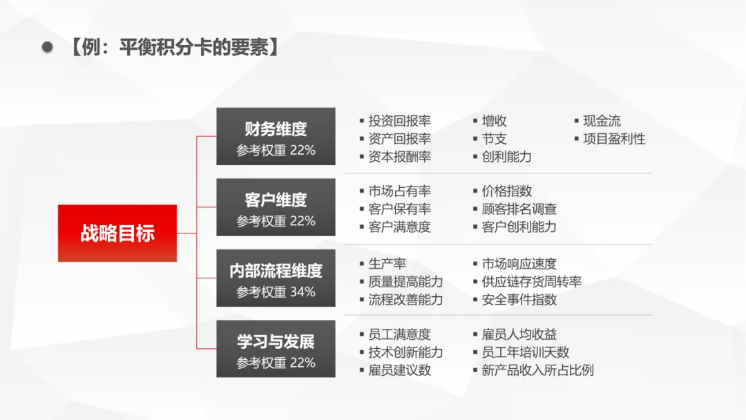 战略评价与控制:对比战略实施实际结果与预定目标,分析偏差原因,采取纠正措施。需建立战略导向的绩效管理机制(如平衡积分卡),覆盖财务、客户、内部流程、学习与发展四大维度,避免 “战略一套、考核一套” 的执行陷阱,同时警惕短期回报导向、沟通不畅等常见问题。