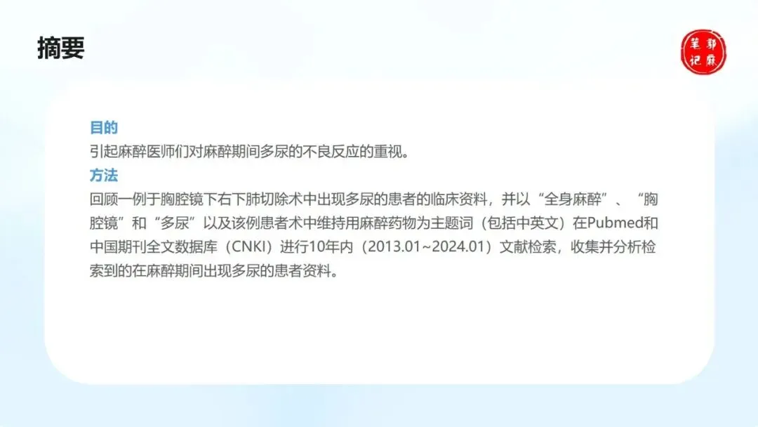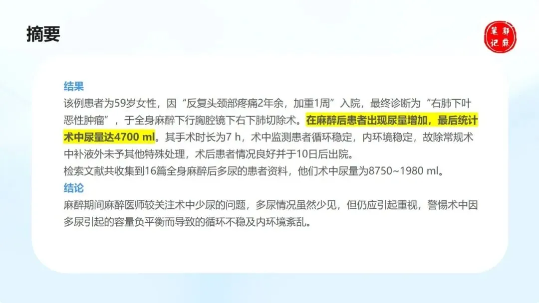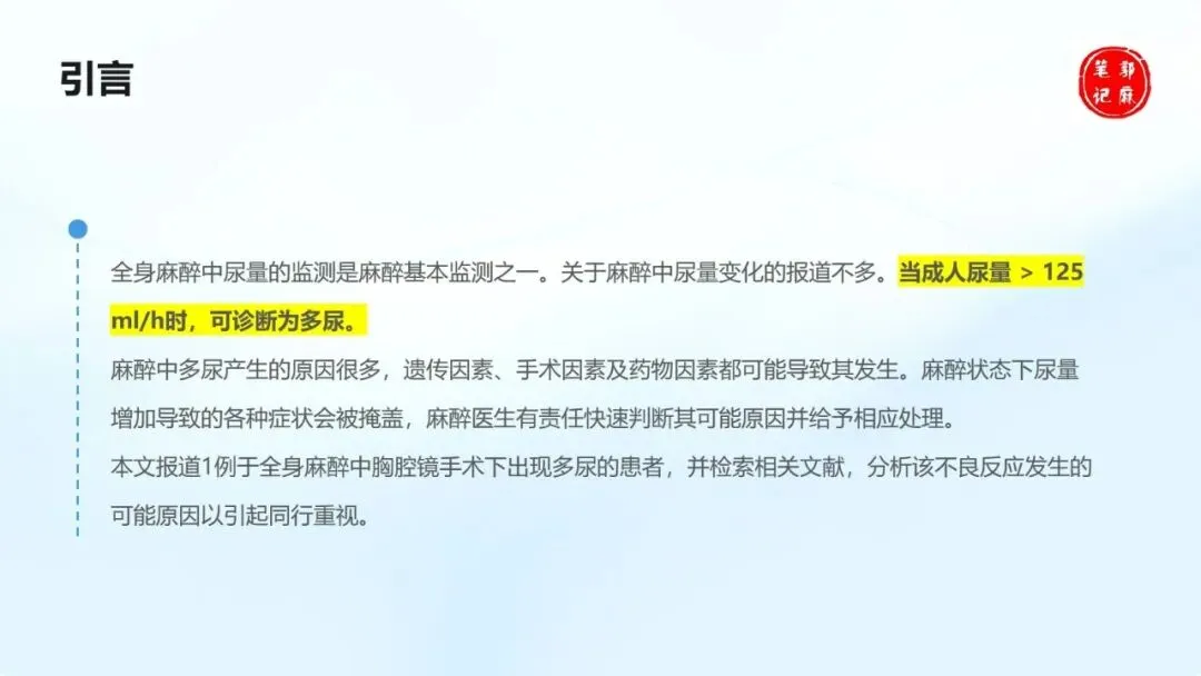 胸腔镜全身麻醉期间多尿一例(PPT课件)+