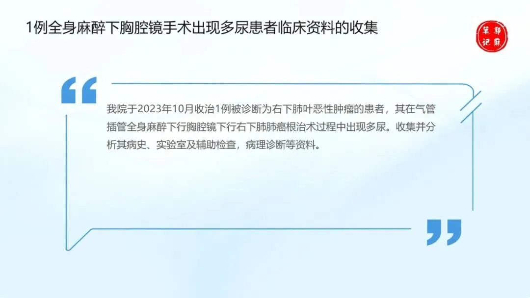 >胸腔镜全身麻醉期间多尿一例(PPT课件)+