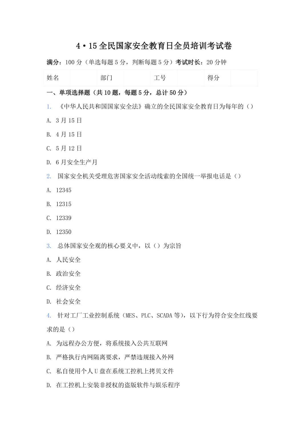 2026年度安全生产教育培训计划培训记录表.docx(免费下载)
