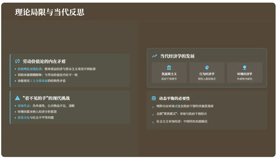 其理论局限显著:劳动价值论存在内在矛盾,未能清晰解释利润来源;“看不见的手”忽视市场失灵、环境外部性和贫富分化问题;对重商主义、重农主义的批判未完全贴合当代经济实践的复杂性。这些局限为凯恩斯主义、环境经济学等当代流派提供了发展空间。
