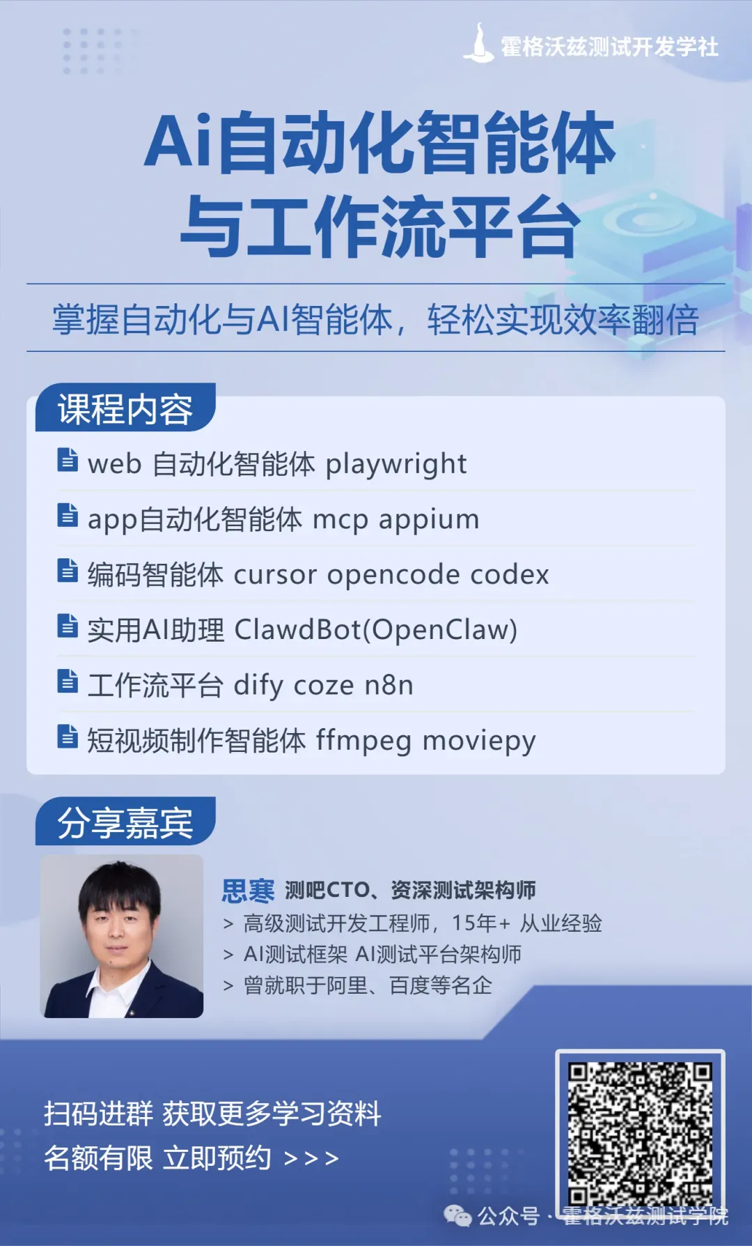 伙伴们,对AI测试、大模型评测、质量保障感兴趣吗?我们建了一个 「人工智能测试开发交流群」,专门用来探讨相关技术、分享资料、互通有无。无论你是正在实践还是好奇探索,都欢迎扫码加入,一起抱团成长!期待与你交流!👇