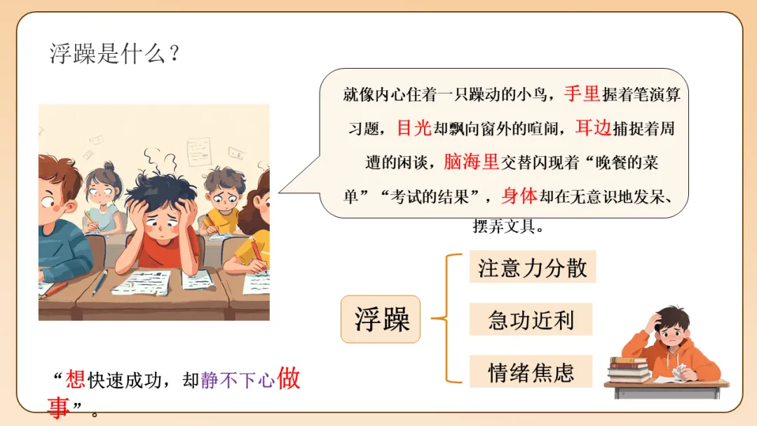 今天的班会,我们要聊一个每个人都正在经历、却很少有人认真面对的话题——浮躁。