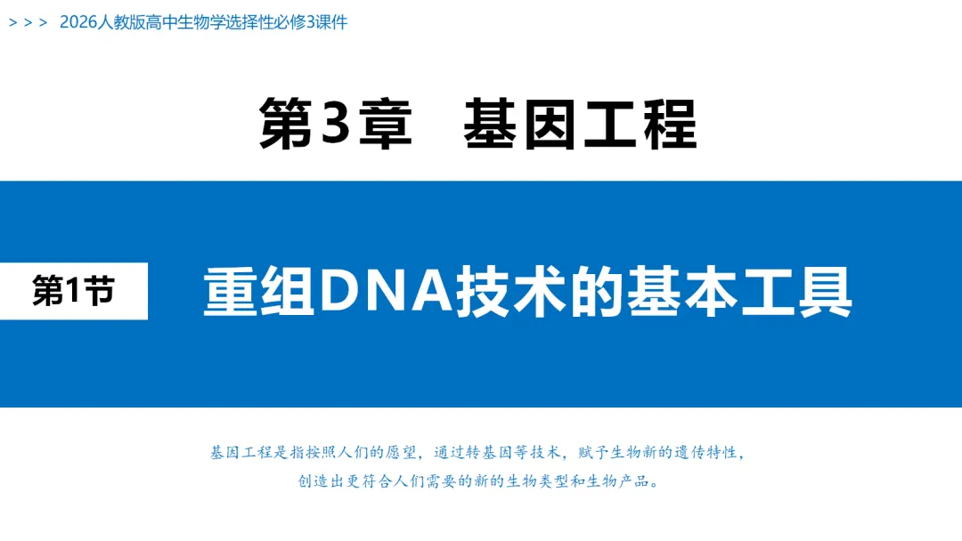 >【PPT课件】高中生物学选择性必修3:§3.1 重组DNA技术的基本工具 | 新课课件(2026版)